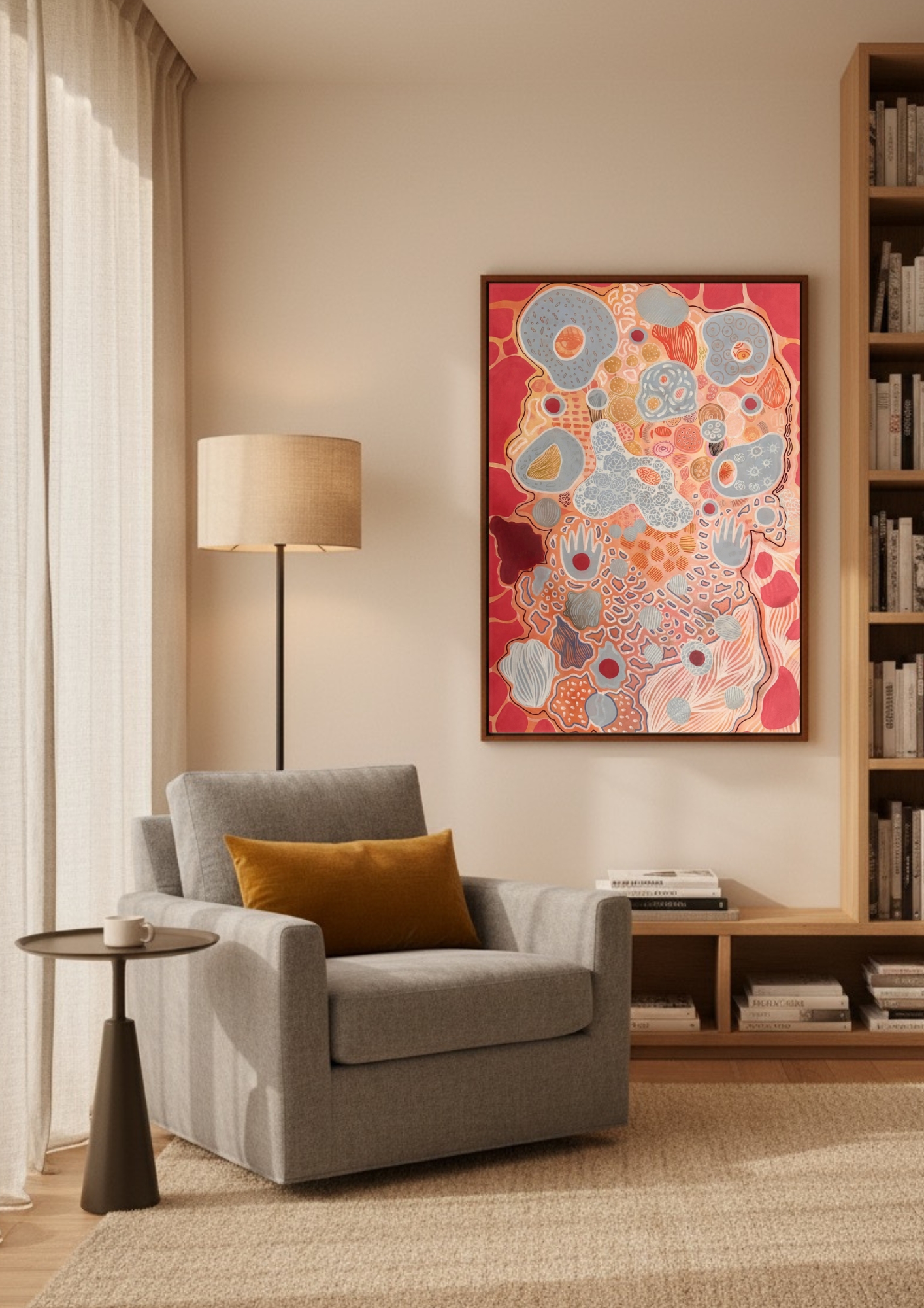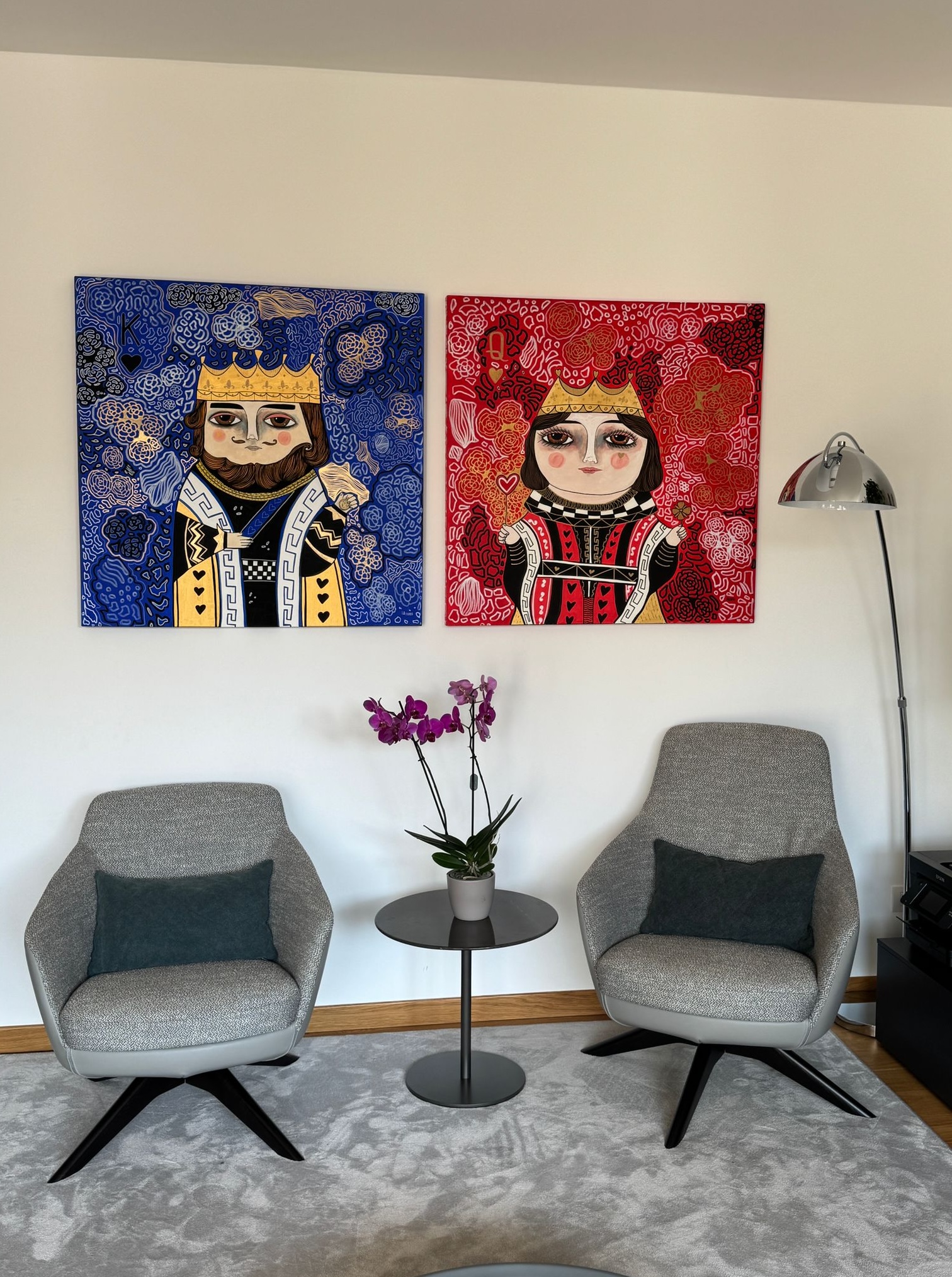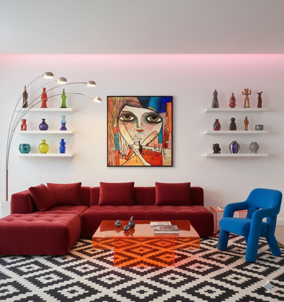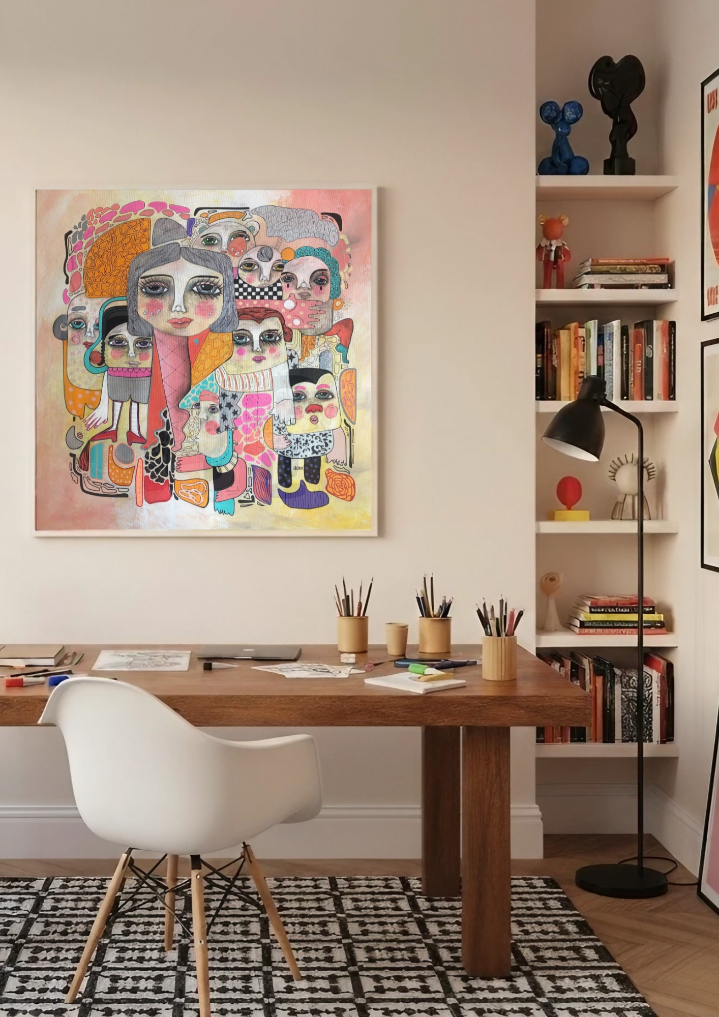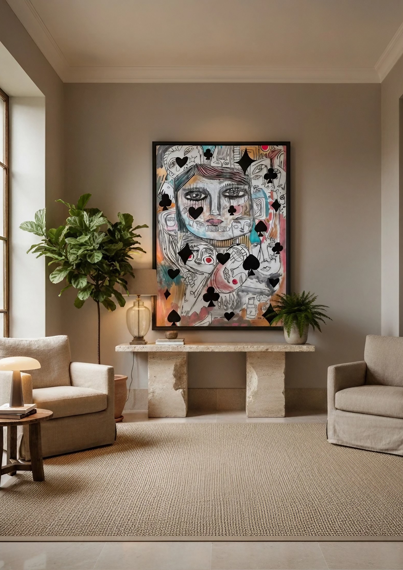 Her creations —paintings, murals, sculptures, and collectible design pieces— evoke a refined emotional resonance, where every surface becomes a living organism. This is art as presence: elegant, intelligent, and deeply human.